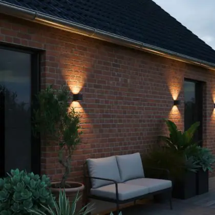 Die D-Lite Elingen Wandleuchte kombiniert Design, Nachhaltigkeit und Funktionalität. Durch den Solarbetrieb und den Bewegungssensor ist sie besonders benutzerfreundlich und umweltbewusst. Das warme Licht und das moderne Up-&-Down-Design machen sie zu einer stilvollen Wahl für jede Fassade.