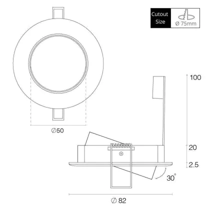 Beschreibung Einbau Spot rund schwenkbar Weiß | Ausschnitt 75mm - GU5.3 Sockel