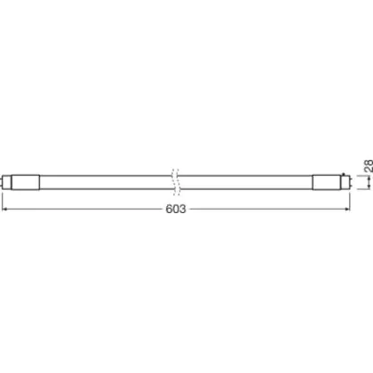 Wenn Sie zu LED wechseln, ist es wichtig, dass Sie die Länge und Wattanzahl Ihrer bisherigen Leuchtstoffröhre beachten. Diese 7.5 W LED-Röhre ersetzt eine konventionelle 18 W Leuchtstoffröhre mit einer Länge von 603 mm. Der Durchmesser beträgt genau wie bei der konventionellen T8-Leuchtstoffröhre 25,4 mm. Auch der Sockel ist gleich: G13. Dieser kommt mit zwei Sockelstiften daher, die genau 13 mm auseinanderstehen.