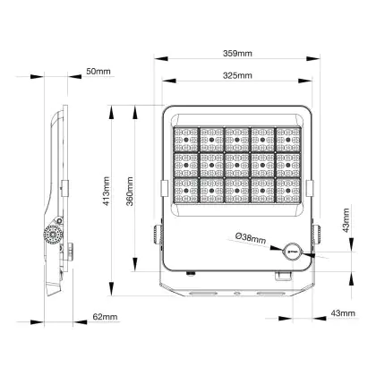 | Herstellername | Noxion LED Floodlight ProBeam V2.0 130W 18200lm 60D - 830-840-865 CCT | IP66 - Symmetrical | |