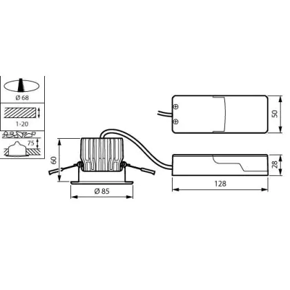Der Ausschnitt einer Leuchte unterscheidet sich von den Abmessungen der Leuchte selbst und bezeichnet speziell die Größe der Öffnung in der Decke, die für die sichere Montage der Lichtquelle benötigt wird.